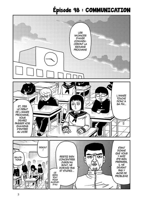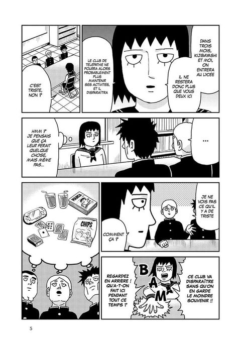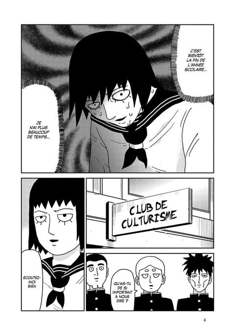Tome Kurata, la présidente du club de télépathie auquel Mob est inscrit, compte bien parvenir à communiquer avec les extraterrestres avant la fin de l'année scolaire... Mais comment Mob et ses camarades vont-ils s'y prendre pour trouver de vrais télépathes... ?!