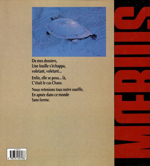 Les Humanoïdes Associés complètent la collection « Moebius USA » en rééditant les deux recueils d'illustrations Chaos et Chroniques métalliques. Ils présentent l'oeuvre d'illustrateur, de graphiste, de publicitaire et même de peintre de Moebius de la même époque créative que les titres de cette collection (d'Arzach à L'Homme du Ciguri).