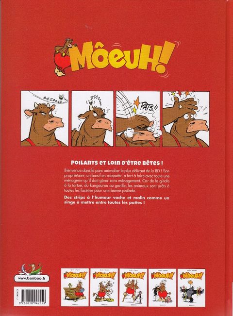 Bienvenue dans le parc animalier le plus délirant de la BD ! Son propriétaire, Bof le boeuf, a fort à faire avec toute une ménagerie qu’il doit gérer sans ménagement. Car de la girafe à la tortue, du kangourou au gorille, les animaux sont prêts à toutes les facéties pour une bonne poilade. Des strips à l’humour vache et malins comme un singe à mettre entre toutes les mains !