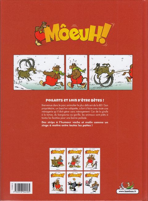 Bienvenue dans le parc animalier le plus délirant de la BD ! Son propriétaire, un boeuf, a fort à faire avec toute une ménagerie qu'il doit gérer sans ménagement. Car de la girafe à la tortue, du kangourou au gorille, les animaux sont prêts à toutes les facéties pour une bonne poilade. Des strips à l'humour vache et malins comme un singe à mettre entre toutes les mains !
