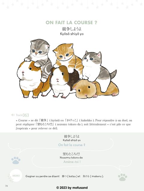 Bien des méthodes d'apprentissage de la langue japonaise existent. Mais vous enseignent-elles les expressions indispensables comme « Jouons ensemble ! » ? Contextualisées et proposant différentes réponses adaptées, elles vous offriront des bases ludiques et pédagogiques de japonais. Illustré et mettant en scène nos petits chats baroudeurs et leurs amis duveteux, ce recueil pourra vous accompagner dans vos voyages futurs !