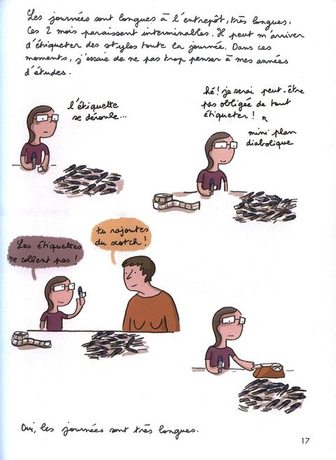« Moi vivant, vous n'aurez jamais de pauses », la menace est lancée, Leslie est prévenue, son patron est un monstre, et il n'est pas le seul. Entre les chefs décomplexés qui comparent les livres à des bouteilles de bière et les équipes managées avec cynisme, l'expérience à de quoi traumatiser. Porté par un dessin frais et joyeux, l'album de Leslie raconte avec humour sa première confrontation avec le monde du travail.