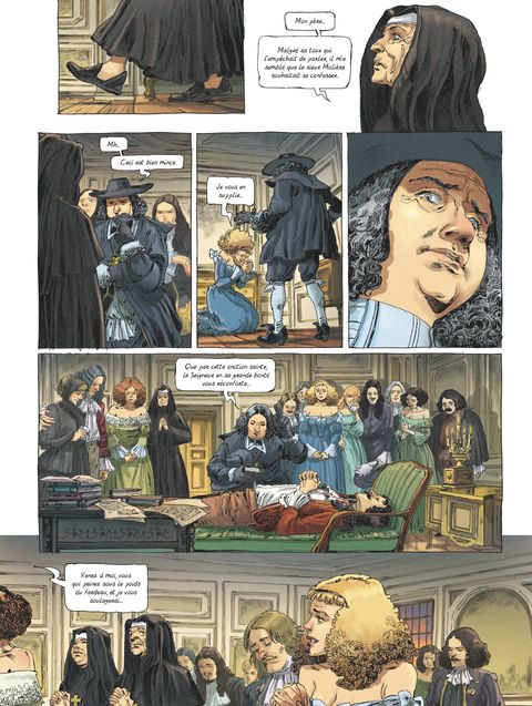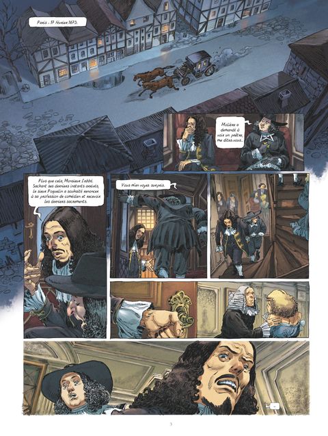 « Le Roi a ri, je l’ai vu ! »En 1664, Molière a déjà acquis une belle notoriété, notamment avec sa pièce L'École des femmes. Mais le jour où il présente sa nouvelle création, Tartuffe, la protection du roi ne suffit pas à lui éviter les foudres de l’Église. Cette satire mettant en scène un faux dévot qui manipule la religion à ses fins, est vécue comme un intolérable blasphème. Les ecclésiastiques les plus rigoristes vont jusqu’à réclamer le bûcher pour le poète impie, et le roi, sous pression, se voit contraint d’interdire la pièce. Mais pour le dramaturge, il est hors de question de se laisser guider sa conduite, et encore moins sa plume. Ce combat pour la libre expression, Molière va le mener contre sa femme inquiète pour sa vie, une troupe divisée par son attitude jugée irresponsable, le tout sur fond de graves déboires financiers, et de trahison de son jeune protégé, un certain Jean Racine…En 2022 nous célébrons les 400 ans de la naissance de Molière. L’occasion de se replonger dans ses œuvres avec cette BD qui fait peau neuve par rapport à d'anciennes lectures de l'affaire Tartuffe, cette comédie muselée en raison de pressions exercées par des extrémistes religieux. Ce thème fait étrangement écho à l'actualité, comme bien d’autres aspects de l’œuvre de Jean-Baptiste Poquelin. Via une narration moderne de type TheCrown, Vincent Delmas et Sergio Gerasi nous mènent au plus près des sentiments des personnages. Le lecteur côtoie un Molière au discours sans concession mais aussi l’artiste populaire et l’homme passionné par la nature humaine, qui a redéfini les contours de la comédie. Un biopic fascinant en trois actes, dont la narration juste et sensible jongle avec les temporalités pour dépeindre tout le génie et la complexité de la figure tutélaire de la Comédie-Française.