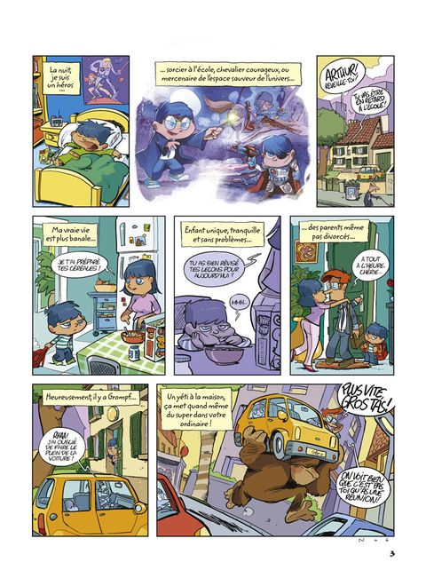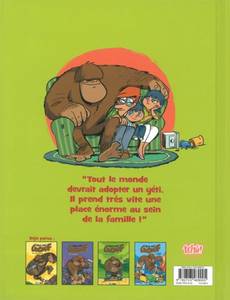 Les nouvelles aventures de la famille au Yéti. Entrez dans la maison du rire : la porte est grande ouverte... Arthur et Grompf le Yéti ont de la suite dans les idées ! Car lorsqu'on habite un petit pavillon de banlieue, il en faut de l'imagination pour ouvrir au rêve de nouveaux horizons. Mais avec un Yéti prêt à vous suivre dans toutes les bêtises - et qui est toujours là pour vous protéger quand elles tournent mal - pourquoi s'en priver ! Et pendant ce temps là, Papa et Maman sont partagés entre tendresse, rire et désolation. Car avec un Yéti qui court dans le salon... y'a quand même de quoi se faire du mouron ! Sauf que quand on est une famille aussi unie, les colères durent toujours moins longtemps que les éclats de rire ! En compagnie de Nob, et de tout son talent graphique plein de tendresse et d'humour mêlés, rentrez dans la plus chouette des familles. Il reste une grande place, juste là, entre les bras du Yéti !