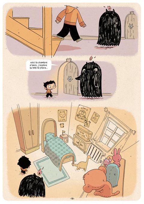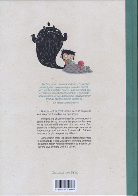 Quel enfant ne s'est jamais réveillé en pleine nuit en proie à une terreur nocturne ? Plongé dans un univers haut en couleurs, notre jeune héros brise le tabou des peurs enfantines en se liant d'amitié avec son pire cauchemar. Son parcours initiatique avec cette étrange créature va cependant prendre au fur et à mesure du récit une tournure de plus en plus inquiétante... A mi-chemin entre le bestiaire fantasmagorique foisonnant de vie de Miyazaki et l'univers gothique de Burton, Yohan nous délivre un conte enfantin qui s'avère plus sombre qu'il n'y paraît.