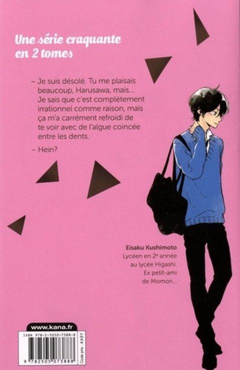 Momori et Eisaku sont sortis ensemble au collège. Mais à cause d’un comportement exécrable d’Eisaku, ils se sont séparés au bout de peu de temps… Deux ans après, alors que Momori peine à trouver un nouvel amour, Eisaku refait son apparition devant elle. Mais le garçon de ses souvenirs ne correspond pas à celui qu’elle a devant ses yeux. Aurait-elle fait l’erreur de ne pas voir le véritable Eisaku ? Serait-il encore temps de recommencer ?