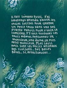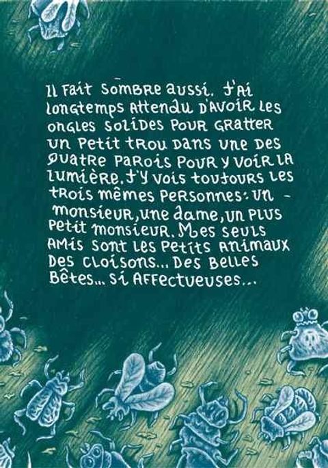 Dans un placard mortifère, telle la plus atroce des attractions de foire, est enfermé l'enfant. Il ne peut pas se voir. est-il un monstre? ou une bête, comme ses compagnons d'infortune, les ""petits animaux des cloisons""? sans souvenir de son arrivée dans cet endroit, l'enfant du placard observe depuis des temps incertains le monde extérieur au travers du petit trou qu'on a percé pour lui dans son meuble. chaque jour, il reçoit la visite de ses geôliers qui le bercent d'histoires sordides. la vérité est au bout de son calvaire et, comme dans tous les contes, l'issue promet d'être heureuse. Ou effroyable. la mine douce et délicate du crayon de blanquet appuie avec délectation le grotesque de cette fable que l'auteur nous livre avec son habituel sourire en coin. la présente édition reprend, sous une forme entièrement nouvelle, le livre paru en 1997 chez schokoriegel, ce qui ravira les amateurs qui le cherchaient depuis, et obligera les autres à sortir une nouvelle fois leur porte-monnaie.