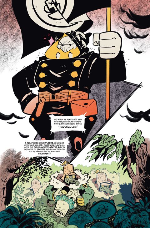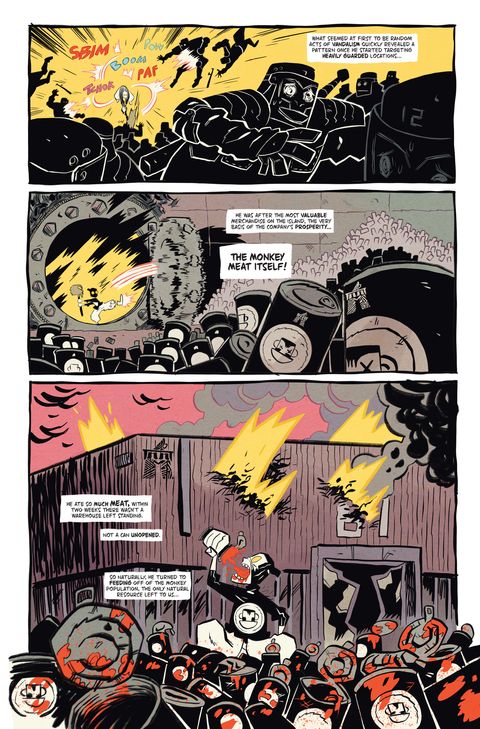 L'entreprise Monkey Meat a fait fortune et continue de prospérer en vendant des conserves de viande de singe. Sa puissance capitaliste est devenue tellement démentielle, que ses dirigeants possèdent un pays entier. Dans cette nation insulaire, l'entreprise (fondée par le mystérieux ) poursuit des expérimentations scientifiques à la limite du surnaturel. Bienvenue sur l'île de Monkey Meat d'où on ne ressort pas indemne. L'univers de Juni Ba ne laissera personne indifférent. L'auteur, scénariste et dessinateur sénégalais propose une hybridation survoltée entre comics, mangas et des influences artistiques qui sortent même du domaine de la bd pour aller vers l'art contemporain. Il met ici son style au service d'une charge grinçante et sans pitié envers l'ultralibéralisme et la société de consommation dans ce qu'elle a de pire.