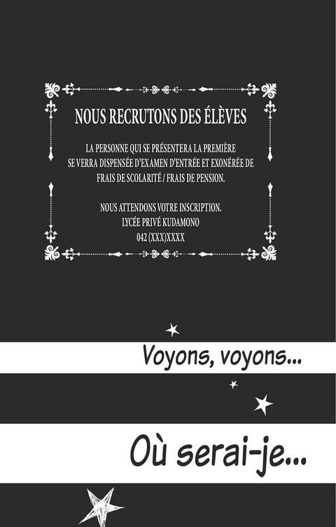 Kureha Mimachi, 15 ans, est orpheline et l'institution où elle vivait a fait faillite. C'est à ce moment qu'elle tombe par chance sur le prospectus du lycée privé Kedamono, qui recrute des élèves. Les frais de scolarité et d'internat étant offerts au premier arrivé, Kureha s'y enrôle, mais ce qui l'y attend est plus que surprenant… Comment survivre au lycée des fauves, tome 1 !