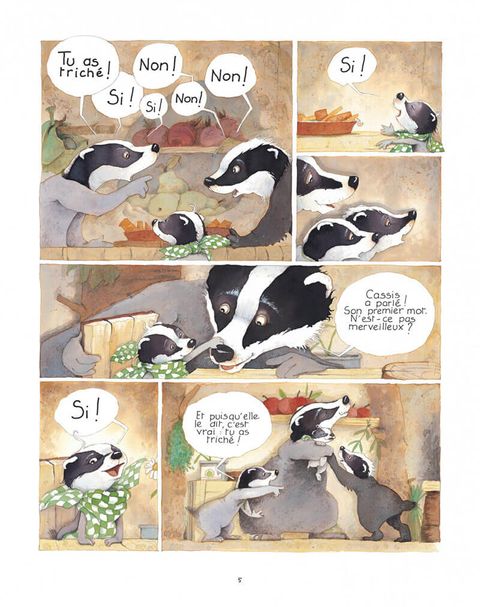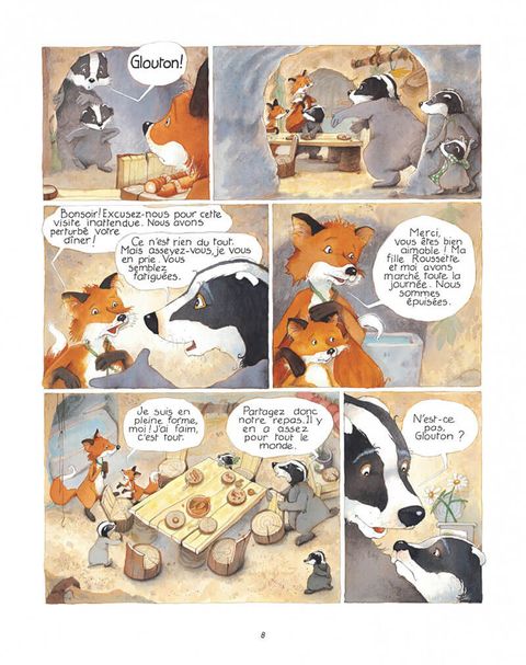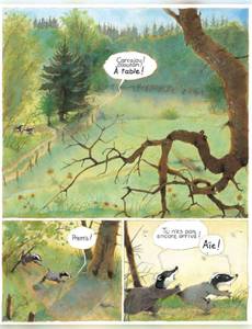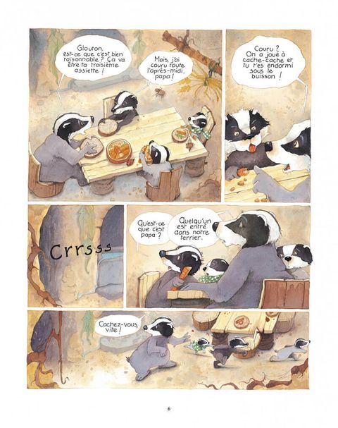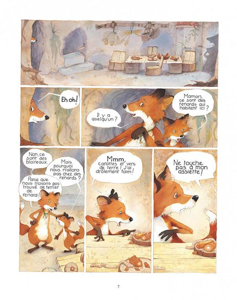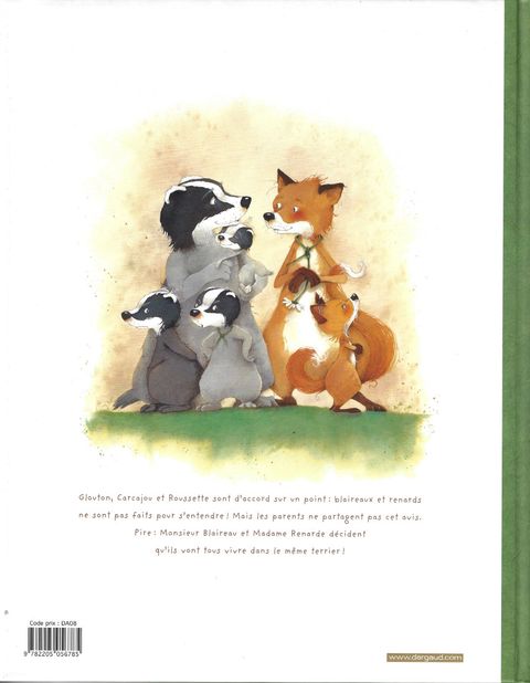Monsieur Blaireau vit dans un terrier avec ses trois enfants. Un jour Madame Renarde et sa fille pénètrent dans leur "maison", en quête d'un nouveau foyer. Commence alors une cohabitation entre les deux familles... Une nouvelle série clairement destinée à un public de jeunes lecteurs (dès 4 ans) par deux auteures venues de l'édition jeunesse. Un "bonbon" savoureux à déguster. Cet album se distinguera par une fabrication soignée à la façon d'un livre jeunesse.