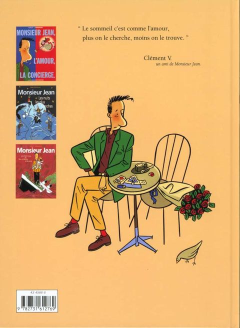 Monsieur Jean a une bonne tête, des copains, des copines, une concierge, un petit chez-soi, des parents modèle courant et des souvenirs d'amours amères.Entre Margerin et Sempé, des histoires tendres et acides mais toujours drôles.