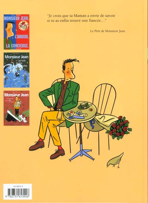 Monsieur Jean a une bonne tête, des copains, des copines, une concierge, un petit chez-soi, des parents modèle courant et des souvenirs d'amours amères.Entre Margerin et Sempé, des histoires tendres et acides mais toujours drôles.