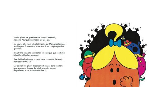Les Madame attendent des bébés ! Elles le vivent chacune à sa façon : Madame Pourquoi se pose un million de questions, Madame Range-Tout prévoit un accouchement parfait et Madame Dodue mange des fraises. La maternité sera-t-elle comme elles l'imaginent ? Le parfait livre cadeau pour toutes les mamans en devenir qui s'interrogent sur leur grossesse.