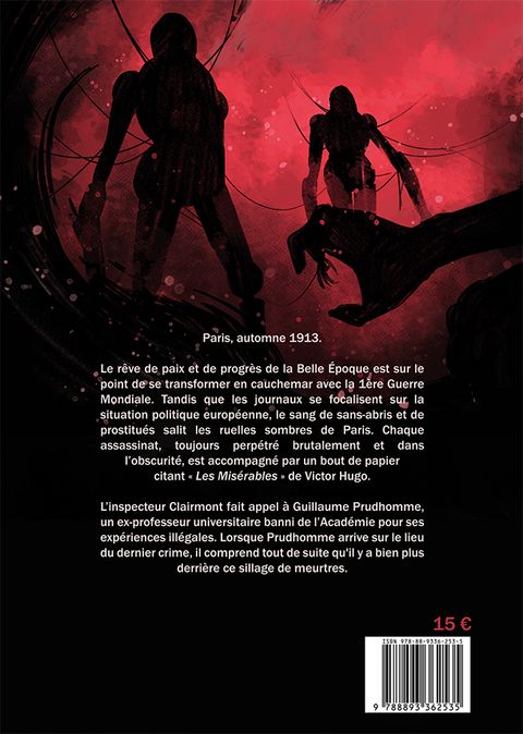 Paris, automne 1913. Le rêve de paix et de progrès de la Belle Epoque est sur le point de se transformer en cauchemar avec la 1ère Guerre Mondiale qui toque à la porte. Tandis que les journaux se focalisent sur la situation politique européenne, le sang de sans-abris et de prostitués salit les ruelles sombres de Paris. Chaque assassinat, toujours perpétré brutalement et dans l'obscurité, est accompagné par un bout de papier citant "Les Misérables" de Victor Hugo. L'inspecteur Clairmont fait appel à Guillaume Prudhomme, un ex-professeur universitaire banni de l'Académie pour ses expériences illégales. Lorsque Prudhomme arrive sur le lieu du dernier crime, il comprend tout de suite qu'il y a bien plus derrière ce sillage de meurtres.