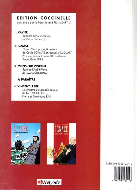 En 1951, dans la foulée d'un film éponyme avec P. Fresnay et pour égaler surtout le succès du «Don Bosco» de Jijé dans «Spirou», Raymond Reding propose aux lecteurs du journal «Tintin » de découvrir «Monsieur Vincent», biographie de Saint Vincent de Paul. Destin extraordinaire, en effet, que celui de cet homme de basse extraction qui devint successivement précepteur royal, puis aumônier des galères, avant de se dévouer aux miséreux. Un superbe exemple d'abnégation mis en scène dans une somptueuse ligne claire. En bonus, 4 histoires courtes de R. Reding dédiées à l"Abbé Pierre, L. Pasteur, A. Bertillon et L. Braille.