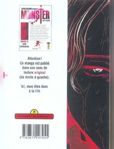 Les dessins saisissants accompagnent une révélation troublante sur l'origine de "le monstre sans nom" et les conséquences désastreuses de sa tentative de "suicide parfait". L'intrigue plonge dans les profondeurs de la psyché humaine alors que les vérités sur la réalité et l'imaginaire se mêlent de manière captivante. Monster continue de (...) Voir le commentaire