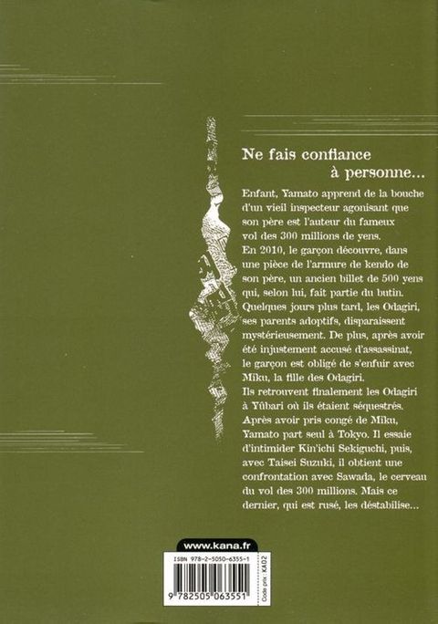 Le vol de 300 millions de yens, perpétré dans une banque de Tokyo, le 10 décembre 1968, reste la plus grande affaire non élucidée de l'histoire criminelle du Japon... Malgré des recherches de grande ampleur, la prescription a sonné le glas de l'enquête jusqu'à ce jour de 2004... Sur le point de mourir, un inspecteur révèle à un jeune garçon que son père est l'auteur du fameux cambriolage ! Entraîné par la roue du destin, Yamato réussira-t-il à élucider l'énigme du vol des 300 millions ?