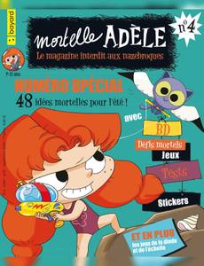 Pour une immersion totale dans le monde de Mortelle Adèle, les lecteurs de 7 à 11 ans retrouveront : - 16 pages de BD 100% Mortelle Adèle - Les "rendez-vous mortels" : un regard décalé sur l'actu - Des tests, spécial été, des jeux, des énigmes, des blagues pour faire chauffer ses neurones... - Des stickers vraiment trop funky moumoute - Ajax, le chat souffre-douleur d'Adèle apprend aux lecteurs comment s'occuper de leur animal de compagnie. - La rubrique "C'est qui ? " pour approfondir l'univers et mieux connaître les personnages de la série ! - "Les dessous d'Adèle" , une rubrique pour découvrir les coulisses de la série avec MrTan et Diane Le Feyer, le créateur et la dessinatrice de Mortelle Adèle. - "Le club des bizarres" votre espace où nous publions les dessins, les photos et créations de folie que nous recevons de votre part. - Et plein d'autres surprises à chaque numéro (dans le numéro été un mini jeu de société pour relever des défis mortels) Attention, nous vous rappelons que ce magazine est interdit aux nazebroques !