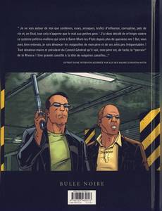 Quand politique et mafia mènent une même danse, le bal se termine fatalement dans le sang. Saint-Mont-les-flots est une tranquille bourgade posée sur un écrin de verdure en bord de mer. Un écrin que la Mafia se verrait bien bétonner jusqu'à le rendre aussi balnéaire et rentable que les plus grandes stations de la Côte... Pour cela tous les moyens sont bons : pots de vin, expropriations sauvages, intimidations. Le tout facilité par la bienveillante et très intéressée neutralité du tout-puissant sénateur-maire, Romuald Des Maures, qui mêle sans vergogne action politique et activités mafieuses... Une femme a décidé de lutter : Alix Des Maures, la propre fille du sénateur. Elue députée afin de concurrencer son père sur son propre terrain, puis invalidée et traînée dans la boue suite à d'infects ragots orchestrés par ses adversaires, la jeune femme sent maintenant son combat lui échapper. Et tente de convaincre son père de quitter ses amis mafieux qui, eux, n'apprécieront guère la démarche. D'autant plus qu'Alix possède de gênantes informations sur certaines irrégularités financières au sujet d'un ambitieux complexe immobilier...