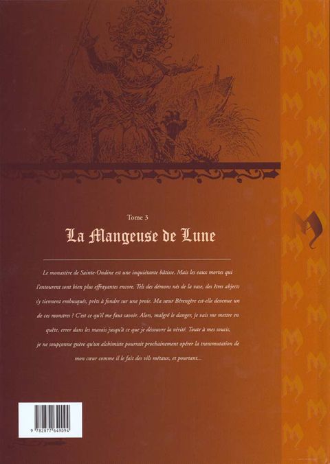 Le monastère de sainte-ondine est une inquiétante bâtisse. Mais les eaux mortes qui l'entourent sont bien effrayantes encore. tels des démons nés de la vase, des êtres abjects s'y tiennent embusqués, prêts à fondre sur une proie. ma soeur bérengère est-elle devenue un de ces monstres ? c'est ce qu'il me faut savoir. alors, malgré le danger, je vais me mettre en quête, errer dans les marais jusqu'à ce que je découvre la vérité. toute à mes soucis, je ne soupçonne guère qu'un alchimiste pourrait prochainement opérer la transmutation de mon coeur comme il le fait des vils métaux, et pourtant.