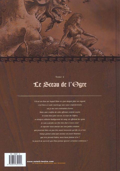 S'il est un lieu sur lequel dieu n'a pas daigné jeter un regard, c'est bien ce vaste marécage aux eaux empoisonnées oú je me vois contrainte d'errer. Mais, aux confins de cette affreuse contrée noyée, il existe bien pire encore, la tour de l'effroi, ce donjon solitaire badigeonné de sang oú officient les ogres. je vais y perdre un être très cher à mon coeur et reporter mon amour sur une petite créature qui pourrait bien ne pas être aussi innocente qu'elle en a l'air. vais je gâcher ainsi par avance ces jours heureux que m'a promis valère, mon beau faiseur d'or ? se peut-il de surcroît que dieu puisse ignorer certaines existences ?.