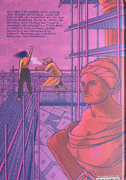 La mère de Julia se morfond depuis toujours dans l'auto apitoiement. Cette sensation étouffante de n'être pas grand-chose a peu à peu colonisé jusqu'au corps de Julia, qui se gratte compulsivement les narines débordantes de mucus depuis l'enfance. Partie à Bruxelles pour suivre des études artistiques, elle voit bien qu'elle ne ressemble en rien à tous les autres étudiants qui peuplent son école d'art. Tout ce qu'elle touche lui semble devenir triste, gluant et amer. Entourée de gêne et de silence, elle n'a plus, suite au décès de sa mère, les moyens de payer sa part de loyer. C'est alors, au hasard d'un concert, qu'elle rencontre les membres d'un collectif féministe qui vont faire basculer son existence. Julia plaque le peu qu'il lui reste pour les rejoindre dans un squat et embrasser leur mode de vie radical, marginale parmi les marginaux. Avec elles, elle souhaite danser, boire, tomber amoureuse et peut-être enfin, lutter contre autre chose que ses propres démons. Morveuse séduit par ses couleurs fortes et sa ligne gracieuse. Rebecca Rosen surprend par la maturité d'un récit courageux autour de problématiques sociétales comme le suicide assisté, et le déterminisme social qui brise tout espoir d'émancipation chez les individus. Rebecca Rosen est une autrice canadienne, installée à Bruxelles depuis quelques années. Morveuse est sa première bande dessinée.