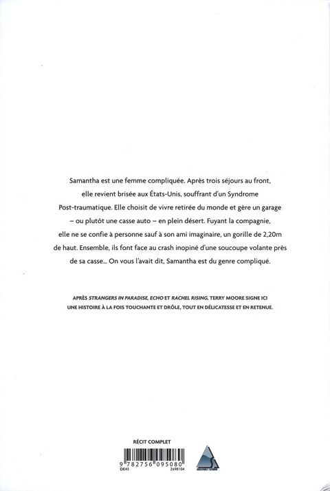 Une soldat rentrée au pays gère comme elle peut son syndrome post-traumatique avec pour meilleur ami un gorille de 2m20 qui partage son appart, la proprio de la casse où elle bosse et des petits hommes vert... Je savais d’avance que j’accrocherais a la dernière œuvre de Terry Moore mais pas (...) Voir le commentaire
