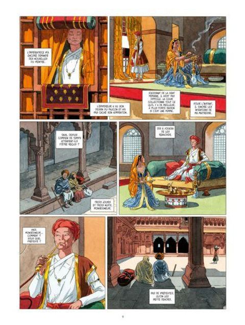 Muraqqa' 1. Vêtue par le ciel Une nouvelle plongée dans l'Inde, l'Inde derrière les murs et les secret des palais avec la dessinatrice de Djinn! Des dessins aussi beaux qu'envoutant! Le scénario pose des bases mais nous laisse actuellement sur notre faim, où va nous emmener le tome 2 ?