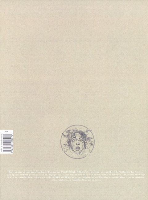 Intégrale comprenant les tomes 5 à 8. Proposés en deux magnifiques intégrales, voici rassemblés les huit superbes albums de Murena, restituant dans toute sa violence le règne de l'empereur Néron. Un captivant et somptueux péplum mettant en scène des acteurs dévorés par la passion du pouvoir et accumulant trahisons et crimes... Ces intégrales se présentent dans un très grand format, avec une couverture inédite, un cahier supplémentaire de dessins et croquis et une nouvelle maquette.