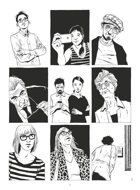 Qui regarde qui ? …Entre les statues de marbre et les tableaux de maîtres, les visiteurs du musée d’Orsay posent tantôt des yeux admiratifs, tantôt un regard perplexe sur les chefs-d’œuvre qui bordent les allées. Ils échangent dans un murmure discret et continuent leur déambulation. Mais lorsque les portes du musée d'Orsay ferment et que la nuit tombe, les sculptures et les peintures quittent la pose, descendent de leur socle, s'animent, se détendent, se mettent à se raconter, s’interrogent ou commentent ce qu'elles ont pu voir ou entendre au cours de la journée. L’Olympia de Manet, qui en a peut-être assez de passer sa vie allongée, déserte sa couche ; les Raboteurs de parquet de Caillebotte, fatigués, délaissent les lattes du parquet ; et Héraclès se dirige, comme à son habitude, tout droit vers sa pièce favorite : les toilettes. Certains se retrouvent pour dresser un portrait peu flatteur des visiteurs indélicats ; d’autres, désabusés, s’assoient pour observer l’absurdité du monde à travers les vitraux de la grande horloge. D’autres encore accueillent les nouveaux venus, car les collections s’agrandissent ! Au petit matin, toutes les œuvres regagnent leur socle ou leur cadre et reprennent la pose avant l'ouverture des portes. Un quotidien au musée où l’on découvre que tour à tour, les rôles s'inversent. Que peuvent bien penser de nous les peintures et les sculptures à force de nous observer et de nous écouter dans les couloirs et les salles d'un musée tout au long de la journée ?… Ce que de jour les « regardeurs » disent des regardés, et surtout ce que de nuit les regardés racontent des « regardeurs ». Le lecteur devient témoin et spectateur d'un quotidien aussi bien nocturne que diurne dans le musée. Fin observateur, Christophe Chabouté signe un album plein de poésie qui nous invite à réfléchir sur notre rapport à l’art, nos certitudes et à la manière dont nous percevons le monde. Se jouant des visiteurs mais jamais du lecteur, il laisse place à la contemplation avec humour et sensibilité.