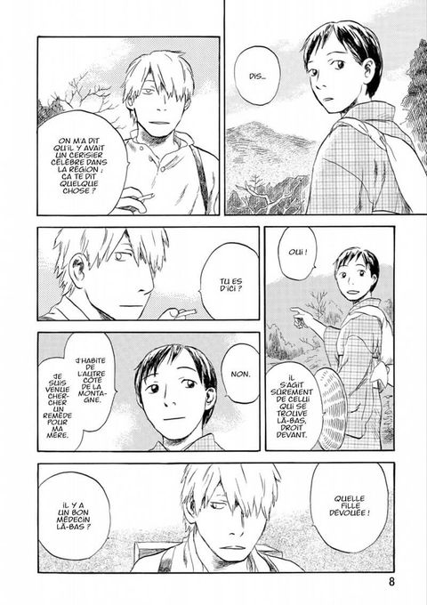 Étendue aux pieds d'un majestueux cerisier, une jeune femme attire l'attention de Ginko. Il s'agit de Saho, recueillie alors qu'elle n'était qu'un nourrisson par la famille de Masaki il y a de cela 3 générations ! La présence d'un mushi installé au creux de l'arbre fait soupçonner à Ginko un terrible secret qui lie la famille de Masaki à Saho !