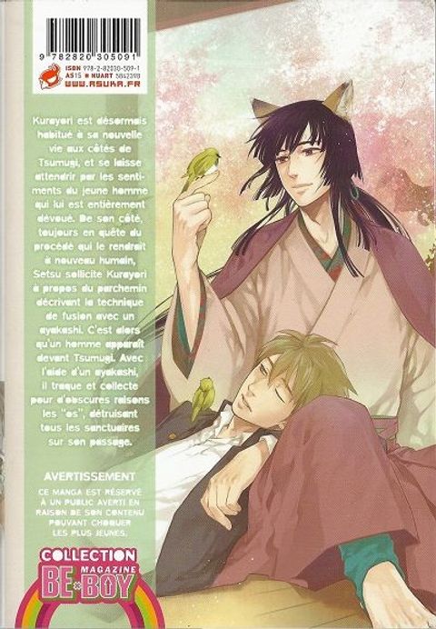 Kuroyari est désormais habitué à sa nouvelle vie aux côtés de Tsumugi, et se laisse attendrir par les sentiments du jeune homme qui lui est entièrement dévoué. De son côté, toujours en quête du procédé qui le rendrait à nouveau humain, Setsu sollicite Kuroyari à propos du parchemin décrivant la technique de fusion avec un ayakashi. C'est alors qu'un homme apparaît devant Tsumugi. Avec l'aide d'un ayakashi, il traque et rassemble pour d'obscures raisons les «os», détruisant tous les sanctuaires sur son passage