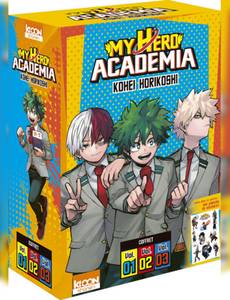 La nouvelle génération de super-héros débarque enfin !Offert dans ce coffret : 1 planche de stickers ! Dans un monde où 80% de la population possède un super-pouvoir appelé alter, les héros font partie de la vie quotidienne. Et les super-vilains aussi ! Face à eux se dresse l'invincible All Might, le plus puissant des héros ! Le jeune Izuku Midoriya en est un fan absolu. Il n'a qu'un rêve : entrer à la Hero Academia pour suivre les traces de son idole. Le problème, c'est qu'il fait partie des 20% qui n'ont aucun pouvoir... Son destin est bouleversé le jour où sa route croise celle d'All Might en personne ! Ce dernier lui offre une chance inespérée de voir son rêve se réaliser. Pour Izuku, le parcours du combattant ne fait que commencer ! La nouvelle génération de super-héros du Shonen Jump débarque enfin !