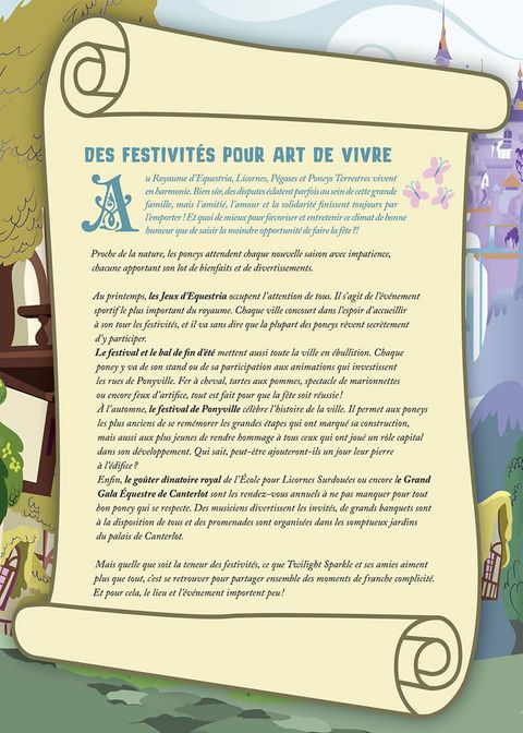 Il y a de l’eau dans le gaz à Ponyville ! Tandis que Rarity fait son possible pour réconcilier Cheerilee et sa petite sœur Scootaloo, c’est subitement toute la ville qui se voit scindée en deux par une dispute portant sur l’organisation d’une grande fête à Ponyville. Ça ne va pas beaucoup mieux du côté de la Ferme de la Douce Pomme. Comment expliquer que les pommes se mettent soudainement à parler et à agresser les habitants ?! Et d’où viennent toutes ces ignobles créatures ?! Le royaume de Cristal est en danger !