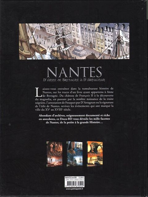Laissez-vous entraîner par la tumultueuse Histoire de Nantes en suivant le parcours fictif d’un livre ayant appartenu à Anne de Bretagne. Du château de François II à la découverte du magnolia, en passant par la sombre naissance de la traite négrière, l’arrestation de Fouquet par D’Artagnan ou la signature de l’édit de Nantes, revivez les événements qui ont marqué l’Histoire de la ville du XVe au XVIIIe siècle.
