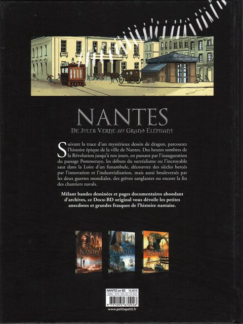 Parcourez l'histoire de la ville de la Révolution à nos jours : la Révolution, les guerres de Vendée et les noyades de Carrier, Stanislas Baudry et les premiers omnibus, Joseph Colin et ses conserves, Jules Verne, le passage Pommeraye, premier voyage en ballon, fin de la traite négrière, le collectionneur Thomas Dobrée, l'arrivée du tramway, Jacques Vaché et André Breton : les débuts du surréalisme, la Première Guerre mondiale, Willy Wolf saute du Pont Transbordeur, l'industrie, les comblements de la Loire, Seconde Guerre mondiale, bombardements, exécution des 50 otages, Aimé Delrue, le Coluche nantais, les grèves sanglantes, la mi-carême, Jacques Demy ; des années 60 à nos jours : les Canaris champions, le départ du dernier navire construit par les chantiers Dubigeon, les géants de Royal de Luxe ...
