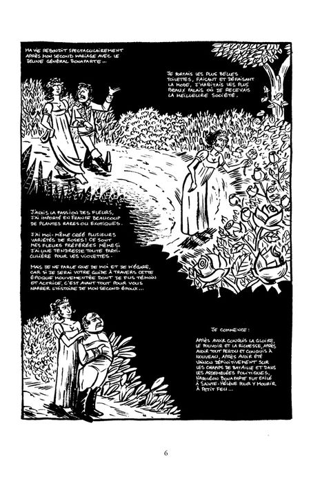 1821, Napoléon meurt à Sainte-Hélène. Que faisait-il sur cette île ? Retour sur sa vie au travers du regard de Joséphine son épouse. Fresque historique au style dynamique et moderne pour aborder l'histoire de Napoléon vue par Joséphine. Sont passés au crible : la naissance et l'enfance de Napoléon, son ambition, ses femmes et son dépucelage par une prostituée, ses amis et ses ennemis, Sainte-Hélène, la Corse, Waterloo, sa mort... Récit documenté et validé par des historiens spécialistes. Livre préfacé par Pierre d'Harville. Dessin au style semi réaliste, grande richesse des détails, cahier graphique en fin d'ouvrage incluant des cartes du monde, des croquis, des travaux de recherche.