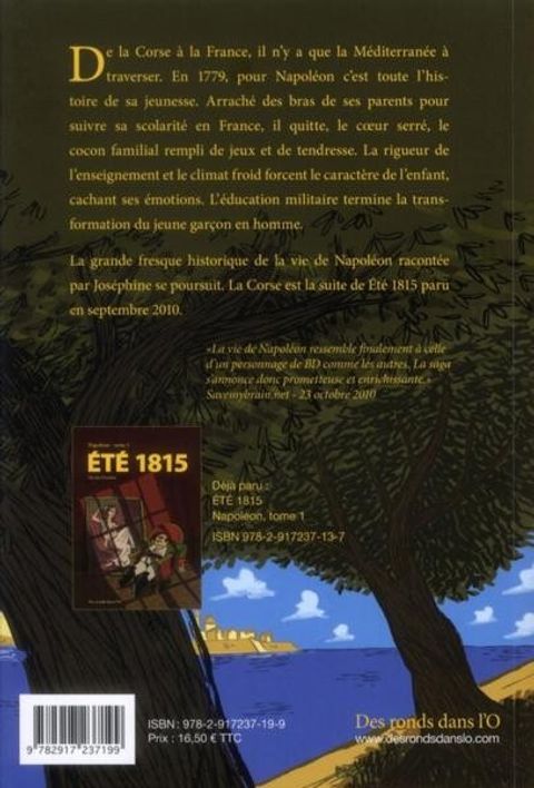 La jeunesse de Napoléon en Corse. Après avoir commencé l'histoire par la fin, avec un premier tome qui raconte l'exil de Napoléon à Sainte Hélène et son décès, l'auteur reprend le cours de l'histoire et montre l'éducation rigoureuse que reçoit Napoléon, le poussant à devenir le futur dictateur que l'on connait. Le jeune homme se voit obligé de quitter la Corse, arraché des bras de sa mère et des jeux d'enfants avec ses frères et soeurs, et en est très affecté. Arrivé en France il est confronté à l'école qui petit à petit va le former à l'art de la guerre.