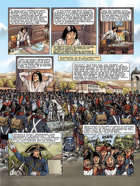 Après son mariage avec Joséphine, Napoléon a rejoint son armée à Nice. Il y découvre une bande de va-nu-pieds déguenillés, dépourvus du minimum d'équipement nécessaire à l'entrée en campagne d'une armée digne de ce nom. C'est en réussissant à galvaniser cette armée fantoche qu'il va battre successivement les Piémontais et les Autrichiens, imposant aux premiers un armistice sans gloire, et repoussant les seconds jusqu'à la frontière italo-autrichienne. Au cours de cette première partie de la campagne d'Italie, tout le génie du jeune général lui permet de terrasser à de nombreuses reprises un ennemi supérieur en nombre et parfaitement équipé. Il a définitivement acquis le respect et l'admiration de ses hommes, et suscite désormais la crainte des armées adverses.