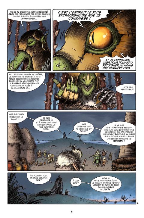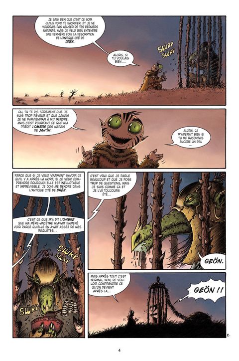 Geön vit au fin fond des marais de Jah'îm. Petit Twörb à la vie monotone, il n'a qu'un seul rêve : quitter son univers étriqué et rejoindre l'Antique Cité des Primordiaux. De sa rencontre avec le cynique Sajiral, le Derkomaï, et Bròg, le naïf combattant de la Grande Arène, naîtra une quête mémorable. qui bouleversera le monde ancien et agonisant de Naragam.