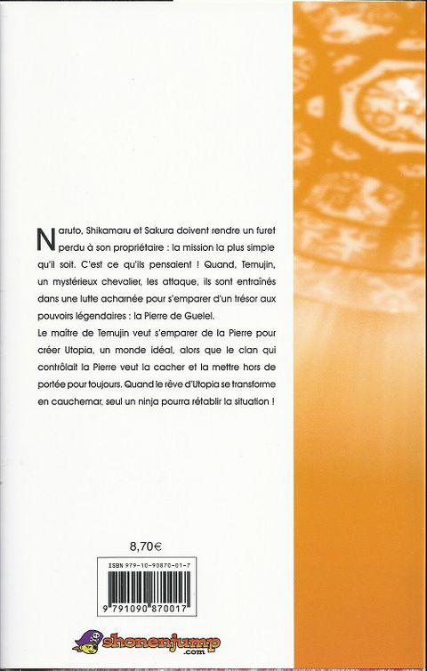 Naruto, Sakura et Shikamaru sont attaqués par de puissants guerriers menés par un mystérieux chevalier : Temujin. Après un combat acharné contre ce dernier, Naruto, séparé du reste de l'équipe rencontre une communauté idéaliste en quête de la Pierre de Guelel. Naruto qui ignore tout de ce joyau légendaire ne va pas tarder à découvrir qu'il renferme un incommensurable pouvoir...