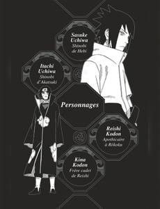 Roman. Naruto, tome 43, après avoir vaincu son frère Itachi, Sasuke se retrouve seul avec Tobi. Ce dernier lui explique les réelles motivations d'Itachi et ce qui l'a poussé à tuer tous les membres du clan. Il a fait cela pour protéger Konoha et Sasuke, son frère adoré.