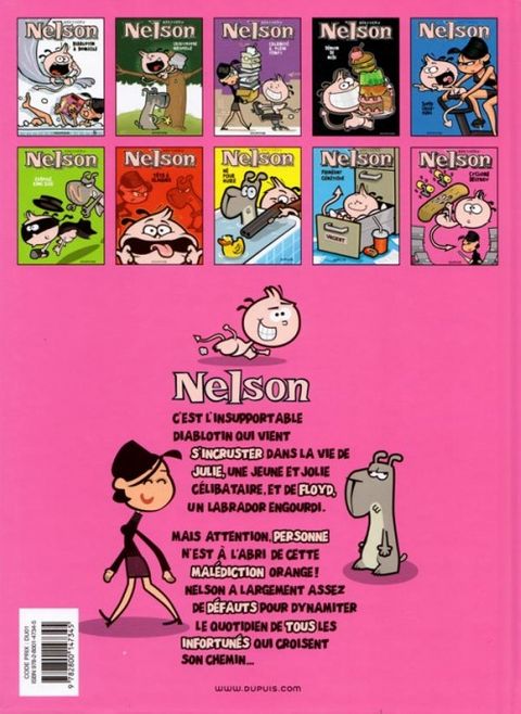 Nelson, l'insupportable diablotin orange, revient dans ce nouvel album plus en forme et plus imaginatif que jamais! On pourrait croire qu'empoisonner la vie de tous ceux qu'il croise finirait par le lasser, mais non! C'est pour lui un talent naturel, voire une vocation! Faire le bien? Aider aux tâches quotidiennes? Ça lui donne des cauchemars! Nelson reste donc fidèle à lui-même : une calamité ambulante et débordante d'imagination lorsqu'il s'agit de rendre la vie impossible à Julie, sa jeune et jolie maîtresse, et à Floyd, labrador sentimental un peu empoté... Quand Christophe Bertschy a créé son petit diablotin orange en février 2001 dans LE MATIN, il ne se doutait pas que celui-ci allait devenir la mascotte du quotidien suisse et le personnage idéal pour les licences en tout genre. En attendant l'adaptation en dessin animé, Nelson a déjà vécu plus de 1882 mini-aventures en strips. Et ce n'est que le début !