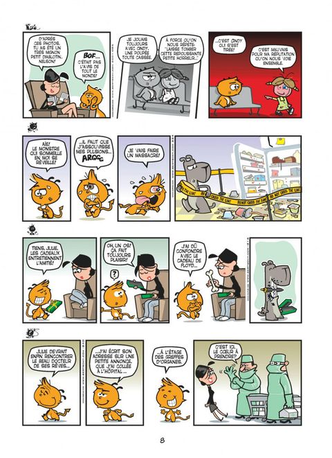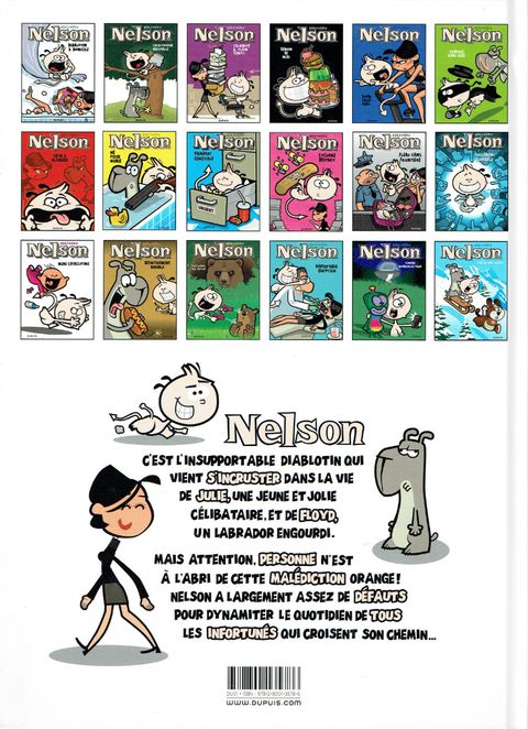 Nelson, c'est l'insupportable diablotin qui vient s'incruster dans la vie de Julie, une jeune et jolie célibataire, et de Floyd, un labrador engourdi. Véritable catastrophe surnaturelle, Nelson n'a pas son pareil pour empoisonner chaque instant de la vie de ses deux victimes favorites. Mais, attention: personne n'est à l'abri de cette malédiction orange! Car Nelson a largement assez de défauts pour dynamiter le quotidien de tous les infortunés qui croisent son chemin...