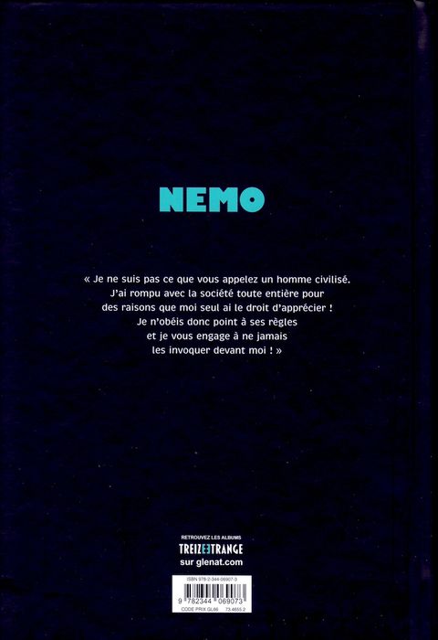 Une version sans concession de 20.000 lieues sous les mersOn y retrouve Ned Land, le professeur Aronnax et Conseil, son majordome, embarqués de force à bord du Nautilus pour un périple sans retour. Nemo est seul contre tous : il a raison, les autres ont tort. Tant pis pour eux, qu’ils vivent dans leur monde et laissent le fond des mers et ses splendeurs au capitaine et à ceux qui ont bien voulu l’accompagner au péril de leur vie. La liberté qu’il leur offre est à ce prix… Peu d’auteurs ont su adapter un roman en donnant un vrai caractère à leur œuvre sans dénaturer le fond. Brüno est de ceux-là, ce qui rend cette adaptation indispensable. La nouvelle édition de cette intégrale comprend un cahier inédit de 16 pages d’illustrations.