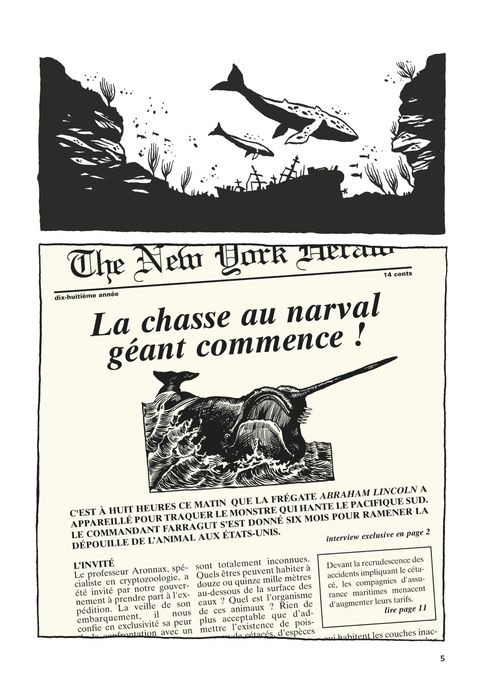 Cette bande dessinée est une très belle adaptation du roman de Jules Verne mais ( je me trompe peut-être) j'y ai aussi vu une sorte de cross-over avec celui de Melville, Moby Dick . Quoi qu'il en soit c'est une réussite totale et, par son dessin et sa mise en scène, (...) Voir le commentaire