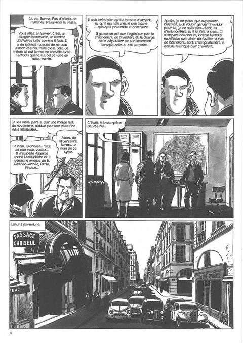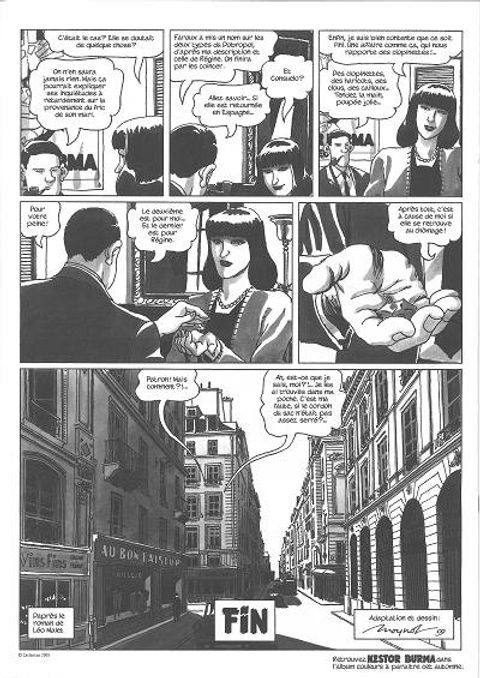 Mars 1959. Nestor Burma a rendez-vous dans les beaux quartiers de l'ouest parisien. Mais quand il se présente au domicile de celle qui l'a appelé c'est pour la retrouver morte, ainsi que son mari, un ingénieur. Double suicide, en apparence. Mais que valent les apparences, dans cet environnement plus que cossu en prise directe avec les réseaux de l'argent et du pouvoir?Après La nuit de Saint-Germain des Prés, déjà proposé par le tandem Tardi et Moynot en 2004, suivi un peu plus tard d'un deuxième album, Le soleil naît derrière le Louvre, voici donc une nouvelle adaptation à quatre mains d'une aventure de Nestor Burma, d'après l'un des romans de Léo Malet.