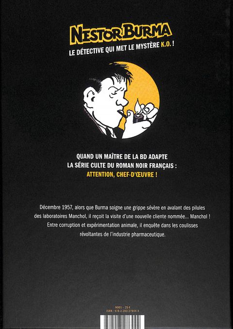Décembre 1957, Burma en tient une sévère, de grippe, qu'il tente de traiter avec le dernier médicament à la mode des laboratoires Manchol. Mais n'ayant pas pour habitude de baisser les bras devant l'adversité, il consent tout de même à recevoir une nouvelle cliente, du genre bourgeoise qui n'a pas froid aux yeux. Quelle n'est pas sa surprise quand elle lui révèle son identité... Madame Manchol ! S'ensuit une enquête dans les coulisses des laboratoires pharmaceutiques, où il sera question de gros sous, bien sûr, et de maltraitance animale.