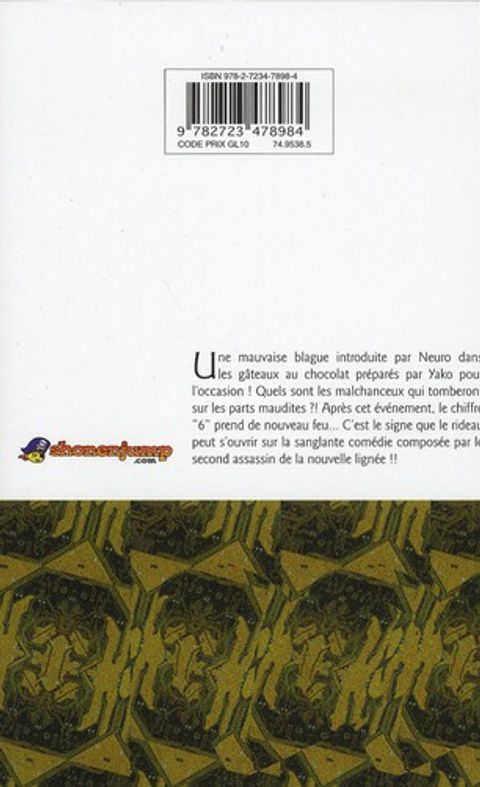 Une mauvaise blague introduite par Neuro dans les gâteaux au chocolat préparés par Yako pour l'occasion ! Quels sont les malchanceux qui tomberont sur les parts maudites ?! Après cet événement, le chiffre "6" prend de nouveau feu... C'est le signe que le rideau peut s'ouvrir sur la sanglante comédie composée par le second assassin de la nouvelle lignée !!