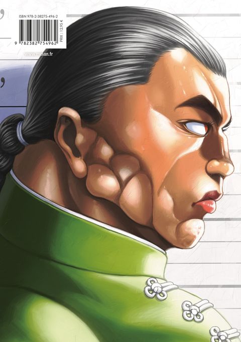 Baki affronte Sikorsky, l'homme qui a osé s'aventurer dans la chambre de Kozue pour la kidnapper. C'est l'occasion pour Biscuit Oliva auquel la police japonaise a fait appel, de démontrer la puissance de celui que beaucoup connaissent sous le nom d'Unchained.Suivez à travers des pages haletantes la suite des combats qui opposent Baki et ses compagnons, à ces terribles fugitifs étrangers jusqu'ici invaincus !